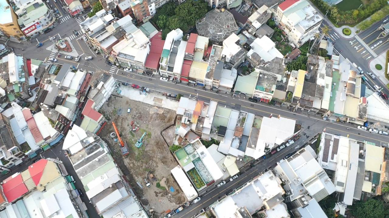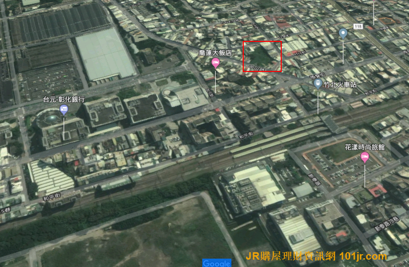 這個基地從空拍圖來看,就在竹北火車站前博愛街和中山路旁
